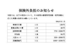 ワシン坂病院 > ワシン坂病院からお知らせ > 保険外負担のお知らせ