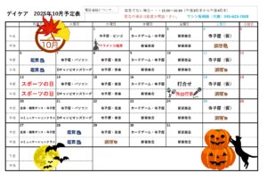 ワシン坂病院 > ワシン坂病院からお知らせ > 10月デイケア予定表