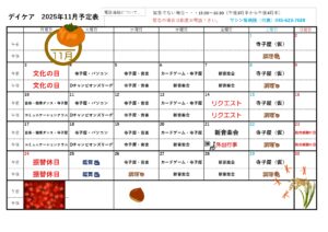 ワシン坂病院 > ワシン坂病院からお知らせ > 11月デイケア予定表